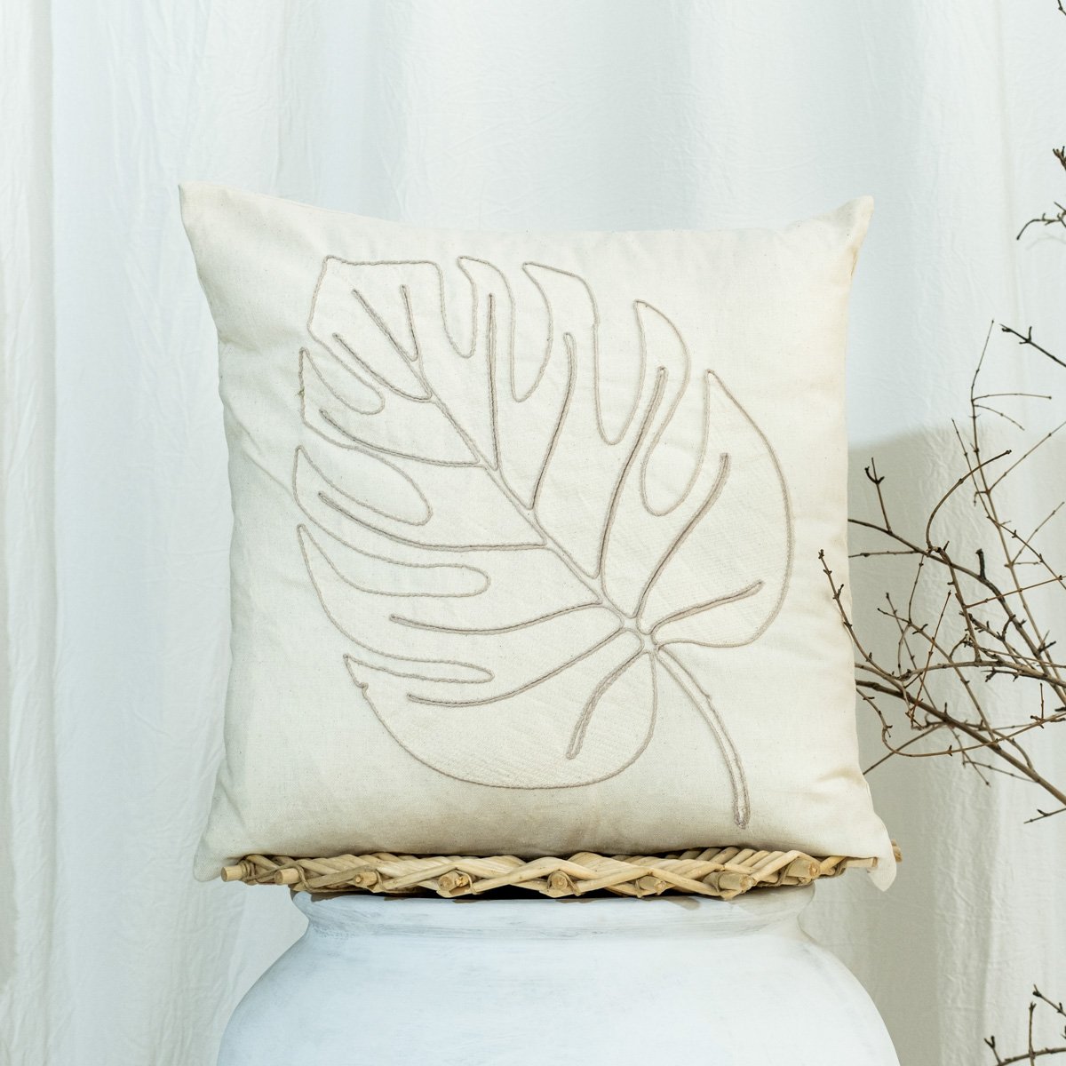 خدادية فيرونا تركي مربعة بحشوة مطرزة كريمي 45 × 45 سم