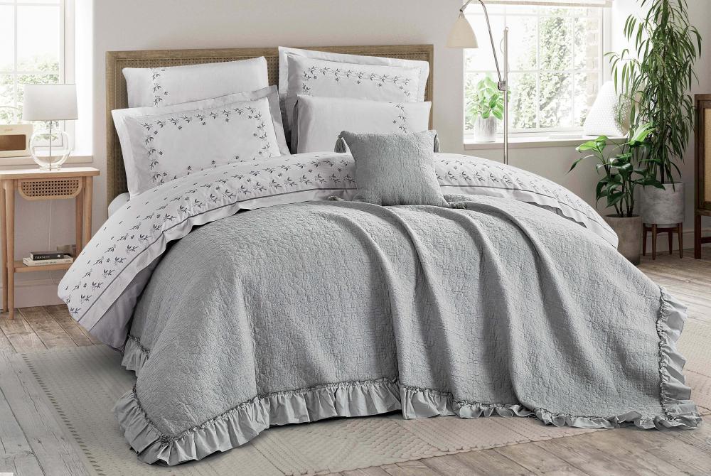 قياسات قطع مفرش سرير مزدوج بارما قطن رصاصي فاتح: