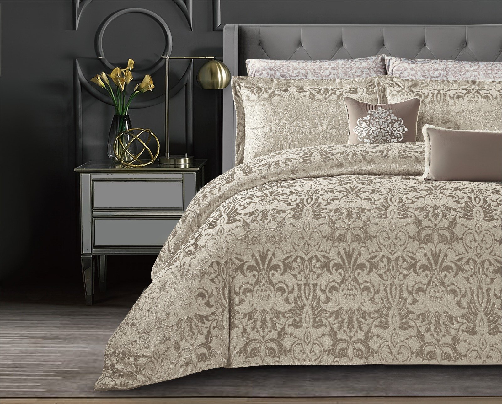 يتميز هذا المفرش بخاماته الفاخرة ، حيث تجمع تقنية الجاكارد بين المتانة والتصميم الزخرفي المميز، وتفاصيله الدقيقة وجودة صنعه تجعله من أفضل المفارش الشتوية المتوفرة في السوق. تصميمه الكلاسيكي الفخم وألوانه الغنية يضيفان لمسة راقية على ديكور غرفتك، ليجمع بين الفخامة والدفء في آنٍ واحد.