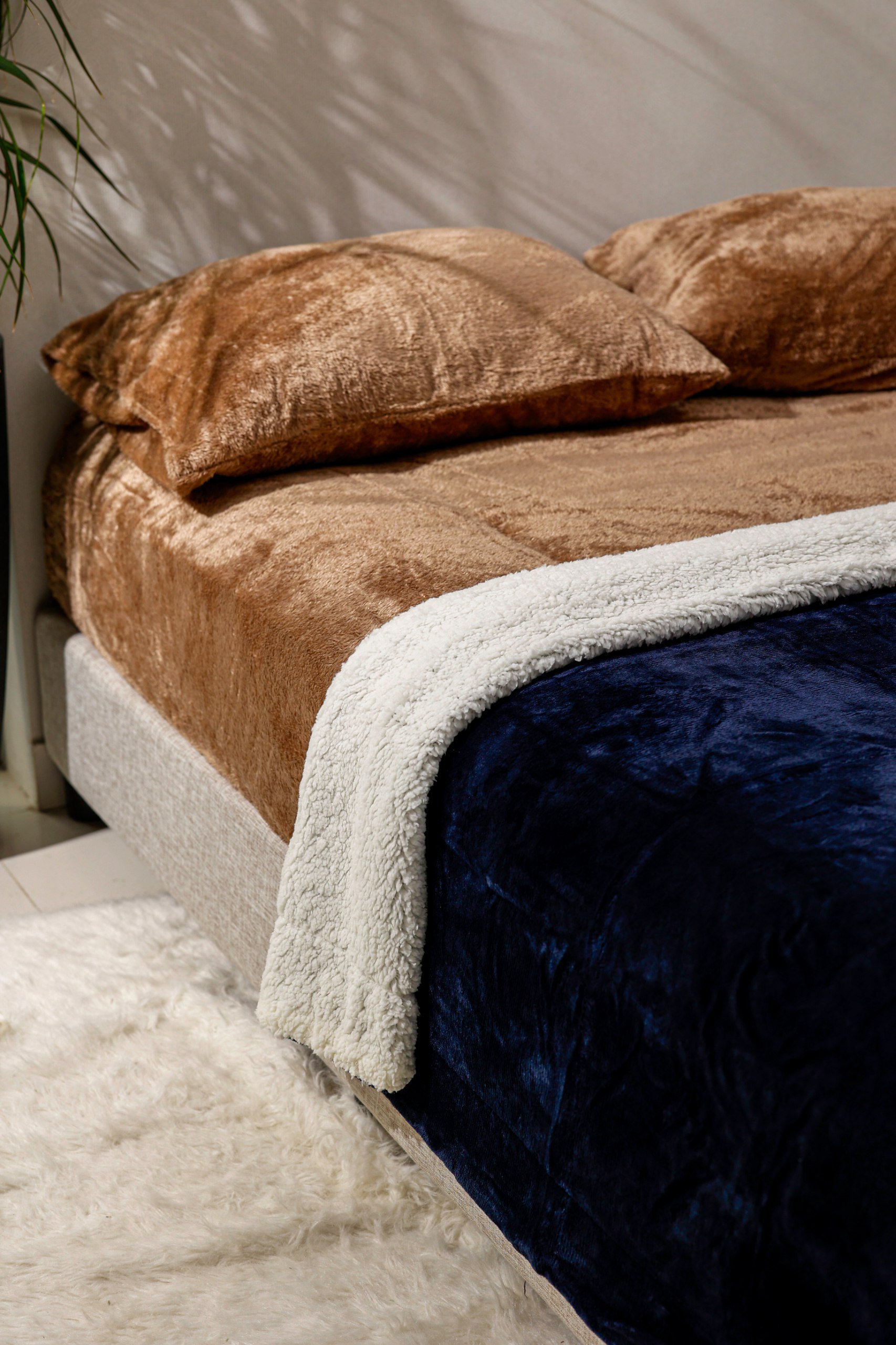 بطانية فاليريو مخمل فرو شتوي مفرد ونص أزرق غامق مقاس 220x160 سم