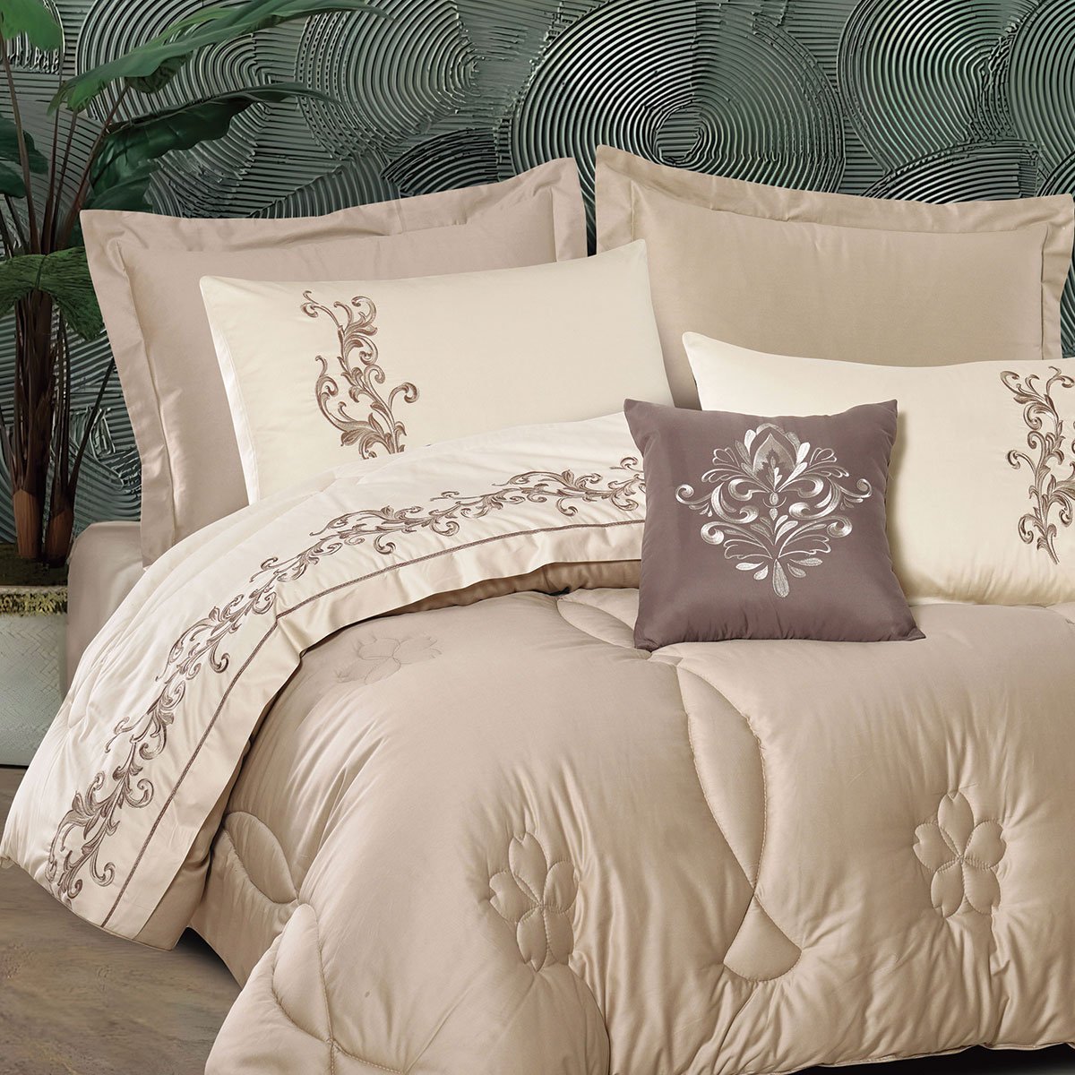مفرش الباما صيفي مزدوج فاخر قطن مطرز بيج عدد القطع 7