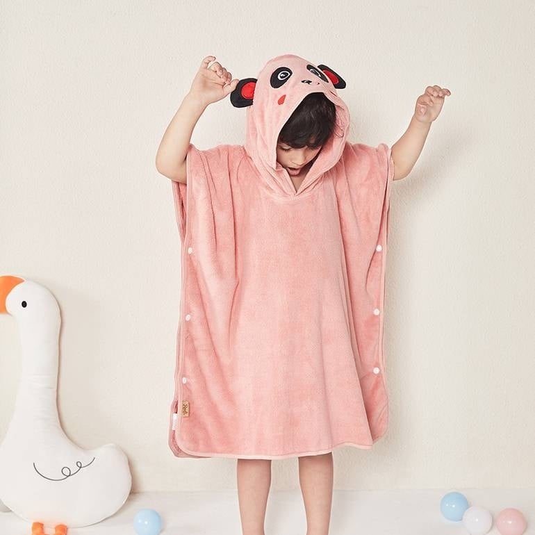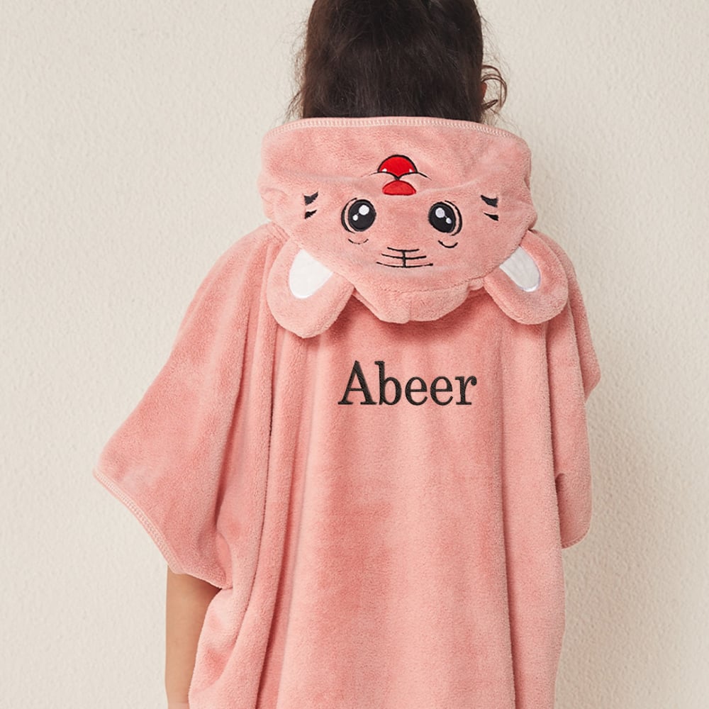 منشفة كابا أطفال قابلة للارتداء مع غطاء للرأس مصنوعة من خامة المخمل خفيفة، ناعمة جداً تتميز بجودتها العالية وامتصاصها الفائق للماء.