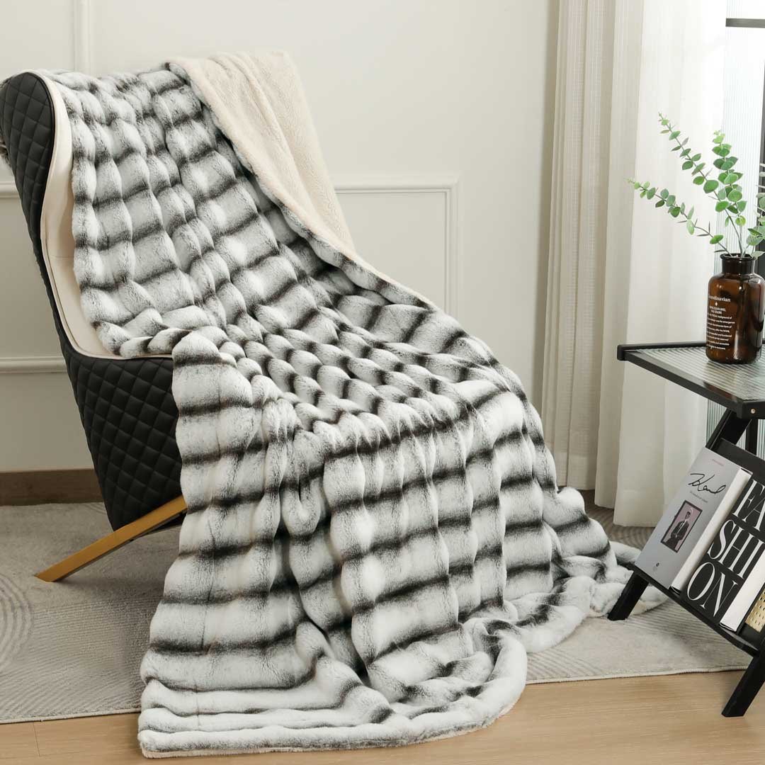 بطانية كلاود ثقيلة فرو ناعم أبيض و رصاصي مقاس 230 × 180سم