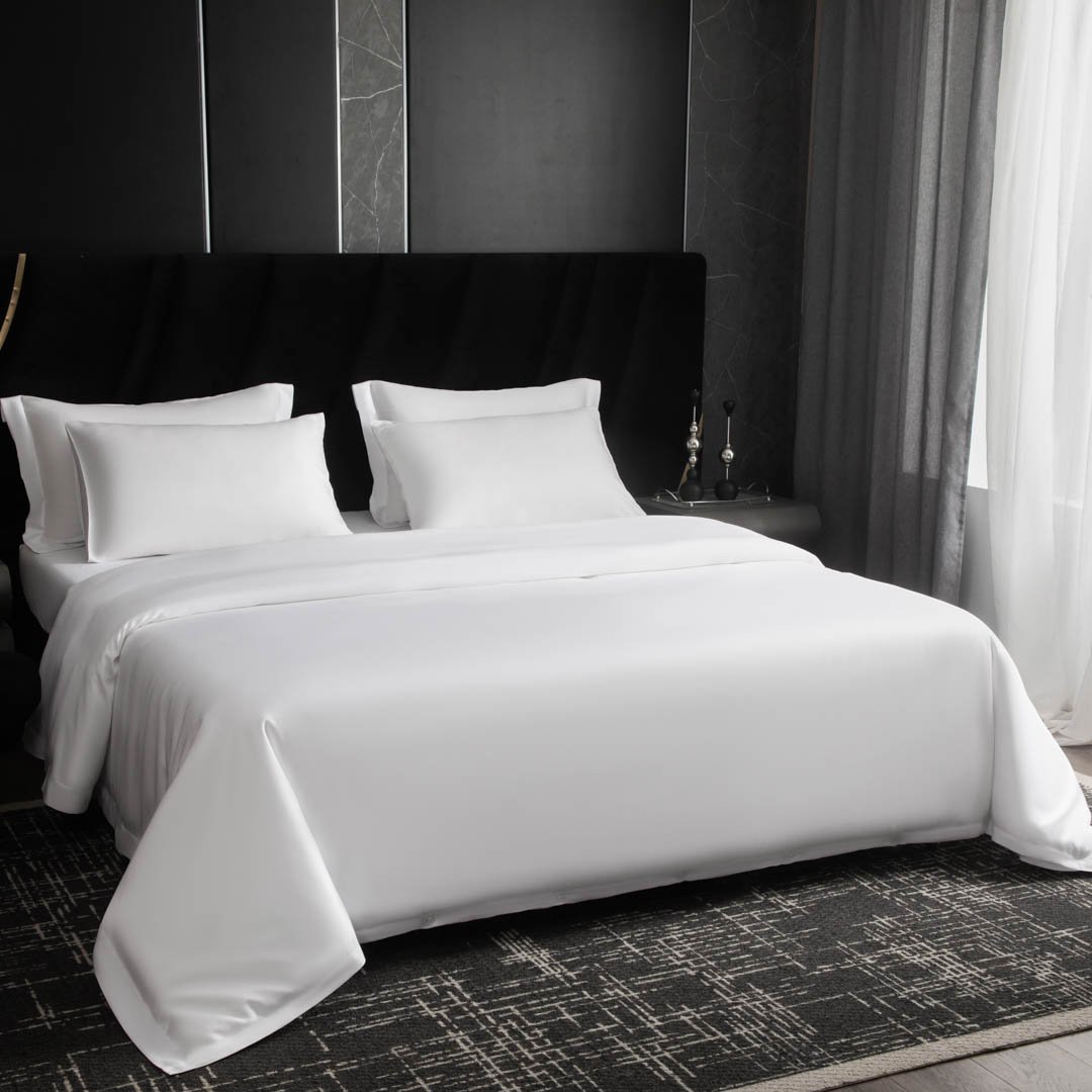 المفرش مصنوع من الليوسيل (تينسل الطبيعي)، نسيج نباتي مستخرج من لب الخشب، يتميّز بملمس حريري ناعم يتفوّق على القطن والحرير الصناعي.