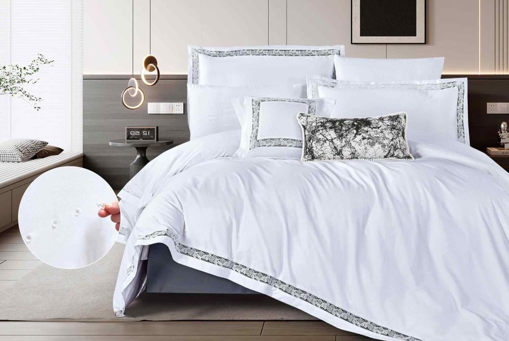 مفرش سرير مزدوج دانتيلا قطن أبيض يجمع بين النعومة والراحة والتصميم الأنيق ليضفي لمسة جمالية في غرفة نومك، ويمنحك ولعائلتك تجربة نوم مريحة ومميزة بكل ليلة.