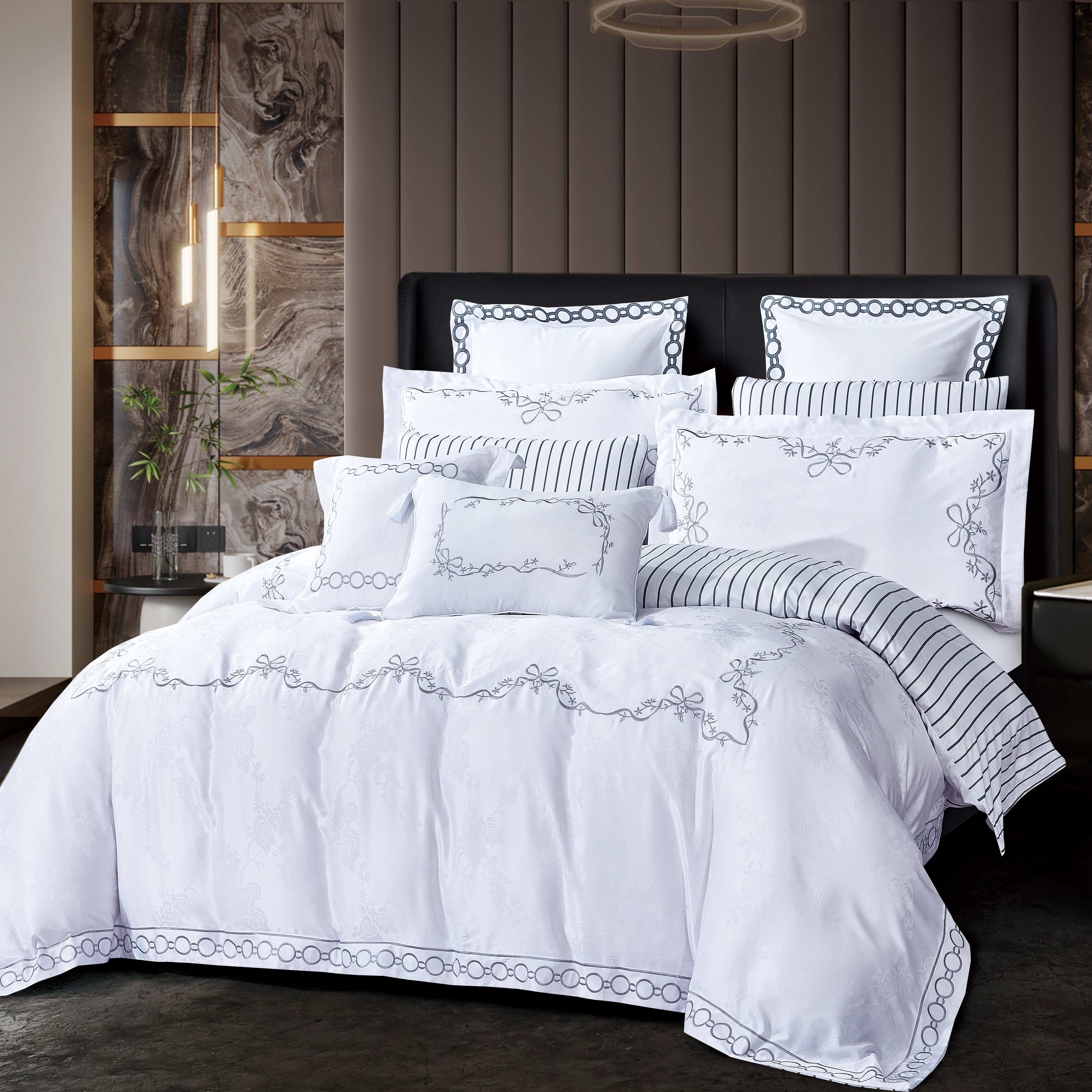 استمتع بنوم هانئ وأحلام سعيدة على مفرش كاثرينا المطرز المريح، المصمم بشكل عصري وتصميم أنيق يناسب تصميم غرفتك ويمنحها مظهرًا أنيقًا ومميزًا.