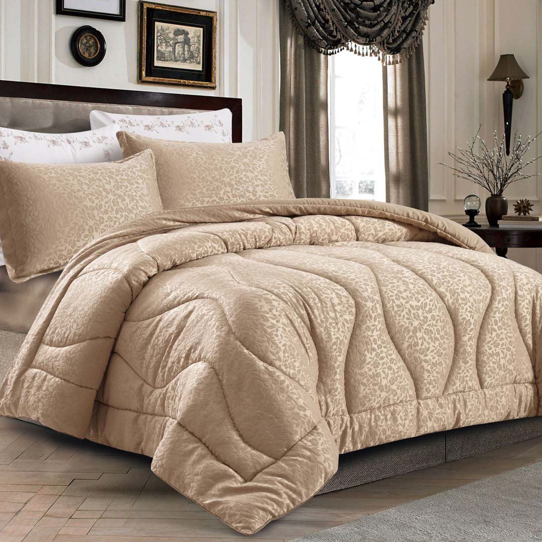 مفرش مانتي صيفي مزدوج جاكارد فاخر بيج غامق عدد القطع 6