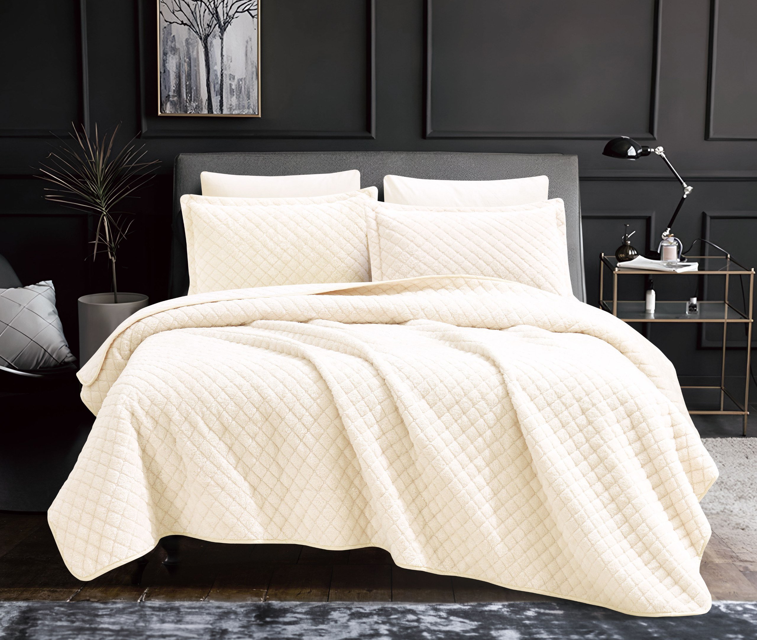 مفرش كويلا شتوي فرو مضغوط مزدوج ♟︎♟︎ كريمي عدد القطع 6