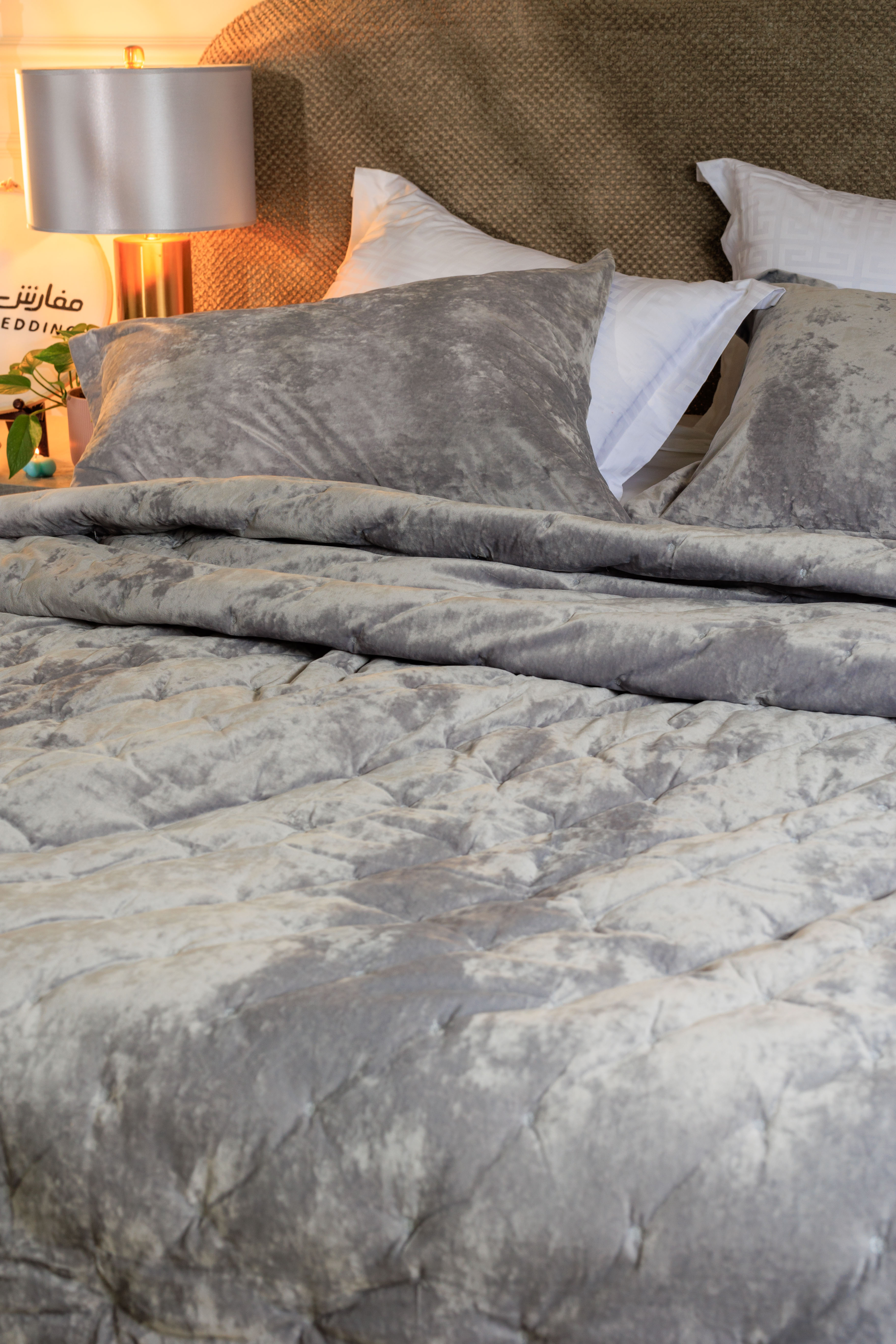مفرش دايموند شتوي مزدوج فاخر مخمل  رصاصي عدد القطع 3