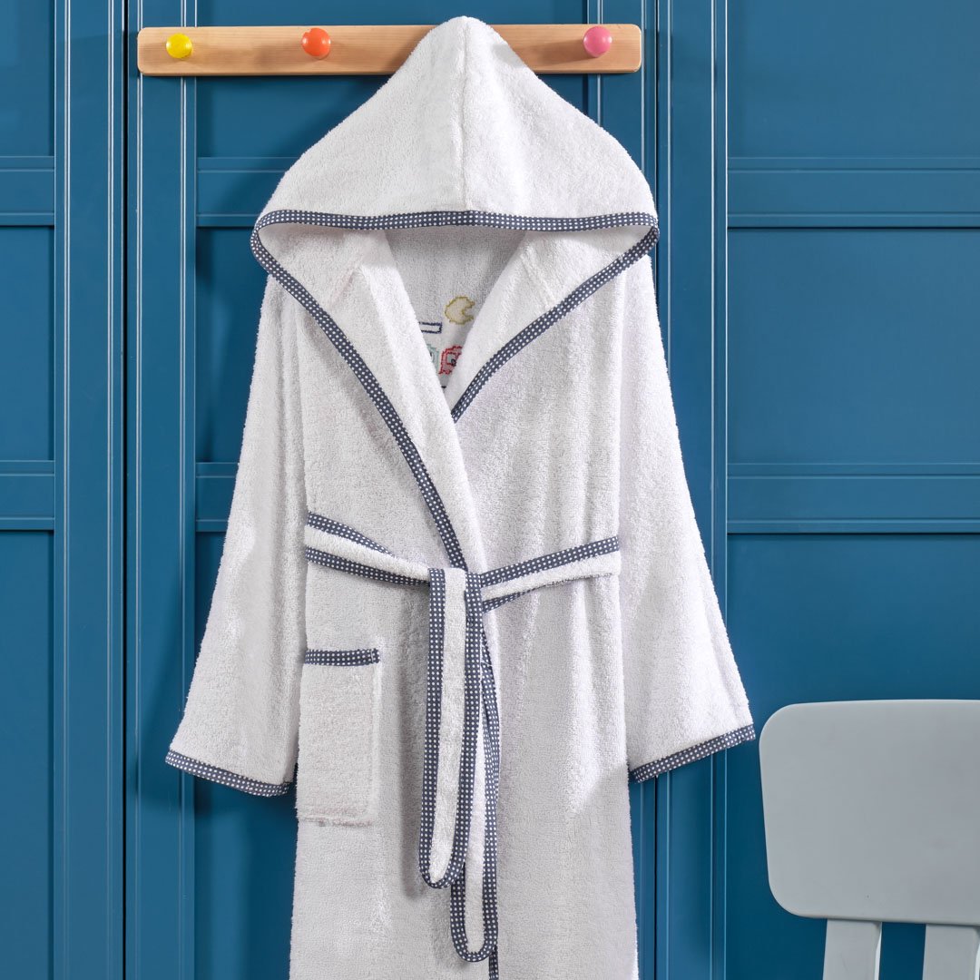 EMBROIDERIED BATHROBE -BOYS-WHITE-(3-5)-(6-8)-(11-12)-(13-14) Y