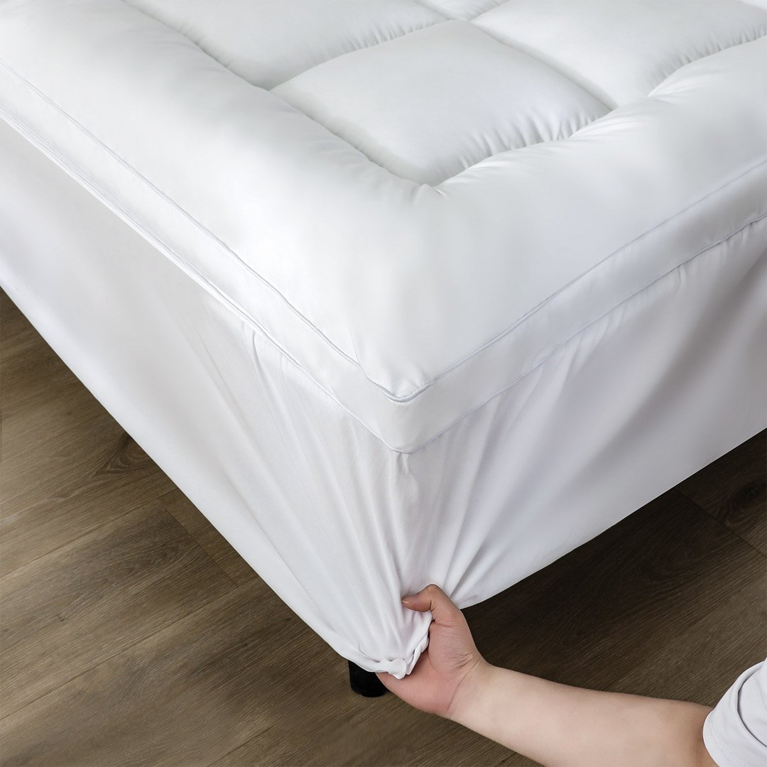 استمتع بنوم هانئ مع سكون لباد مريح فندقي كوين سماكة 5سم أبيض، المصنوع من مايكروفايبر عالي الجودة. بتصميم فندقي أنيق.
