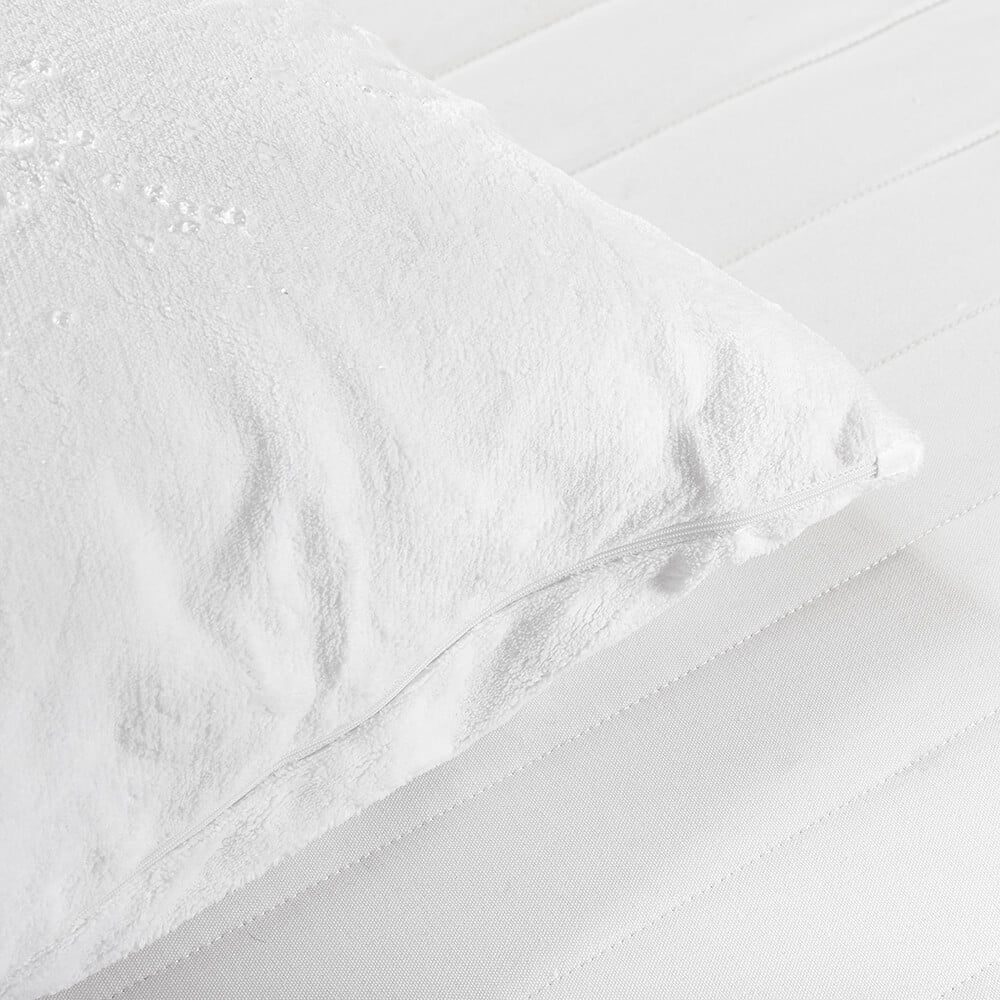 يمكنك إطالة عمر وسادتك باستخدام غطاء واقي وسادة نداف لاحتوائه على البولي يوريثين الذي يمنع السوائل والرطوبة من الدخول ويحافظ على وسادتك جافة ومحمية ضد البقع والأوساخ.