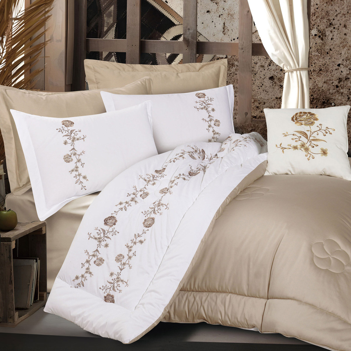 مفرش نايروبي صيفي مزدوج فاخر قطن مطرز بيج عدد القطع 7