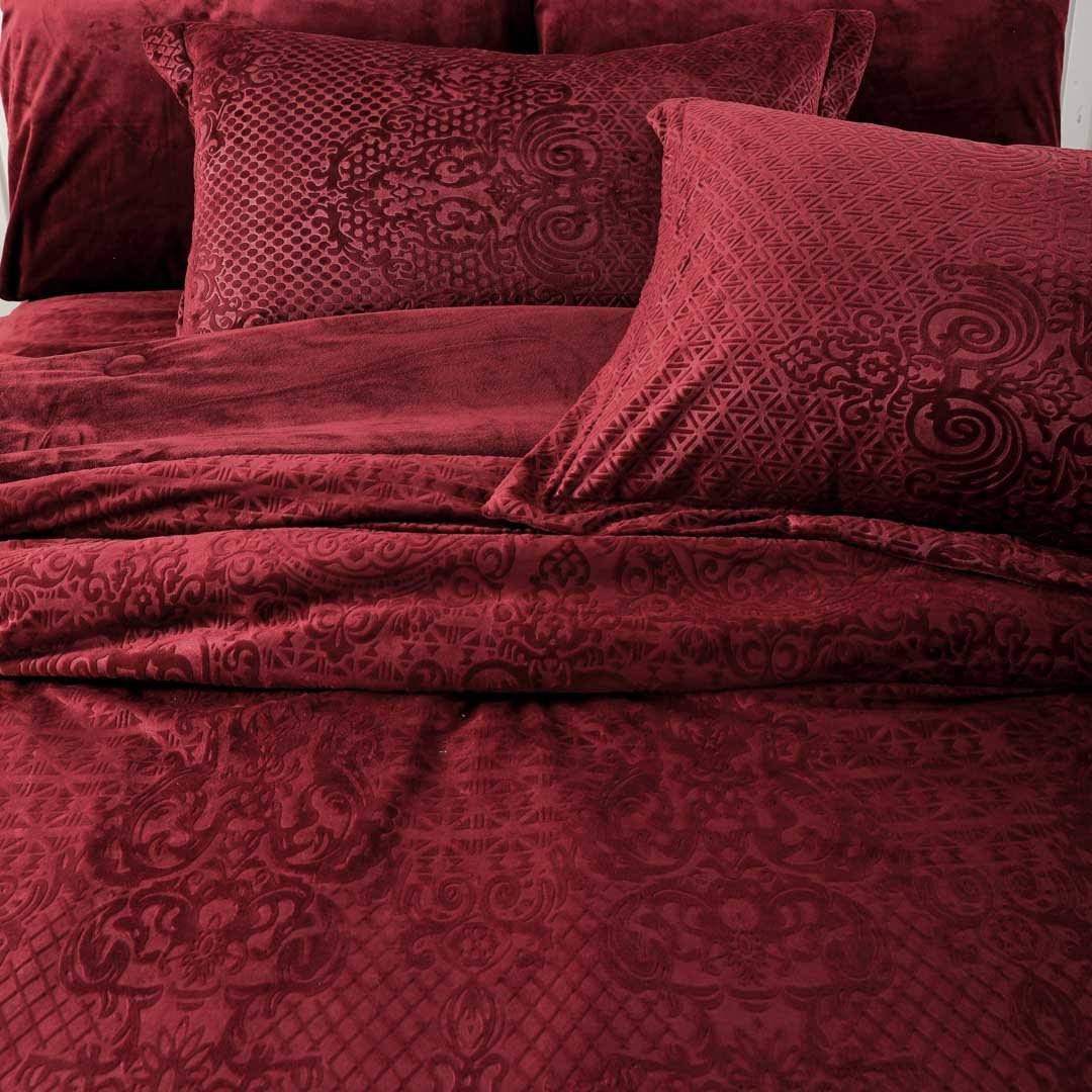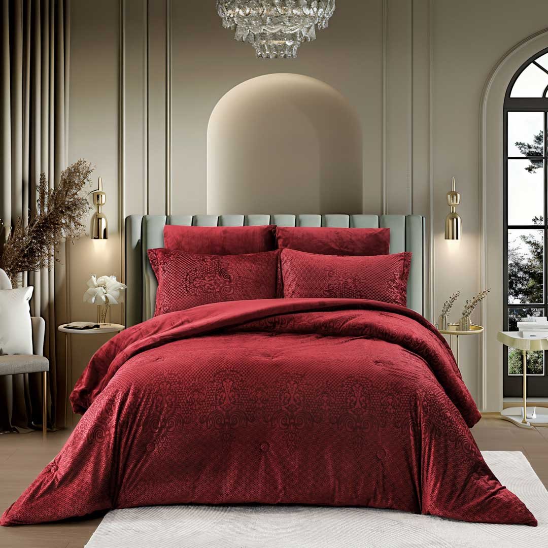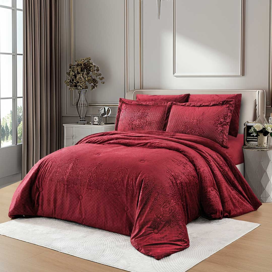 مفرش نارنج شتوي فاخر  مفرد ونص مخمل محفور عنابي عدد القطع 4