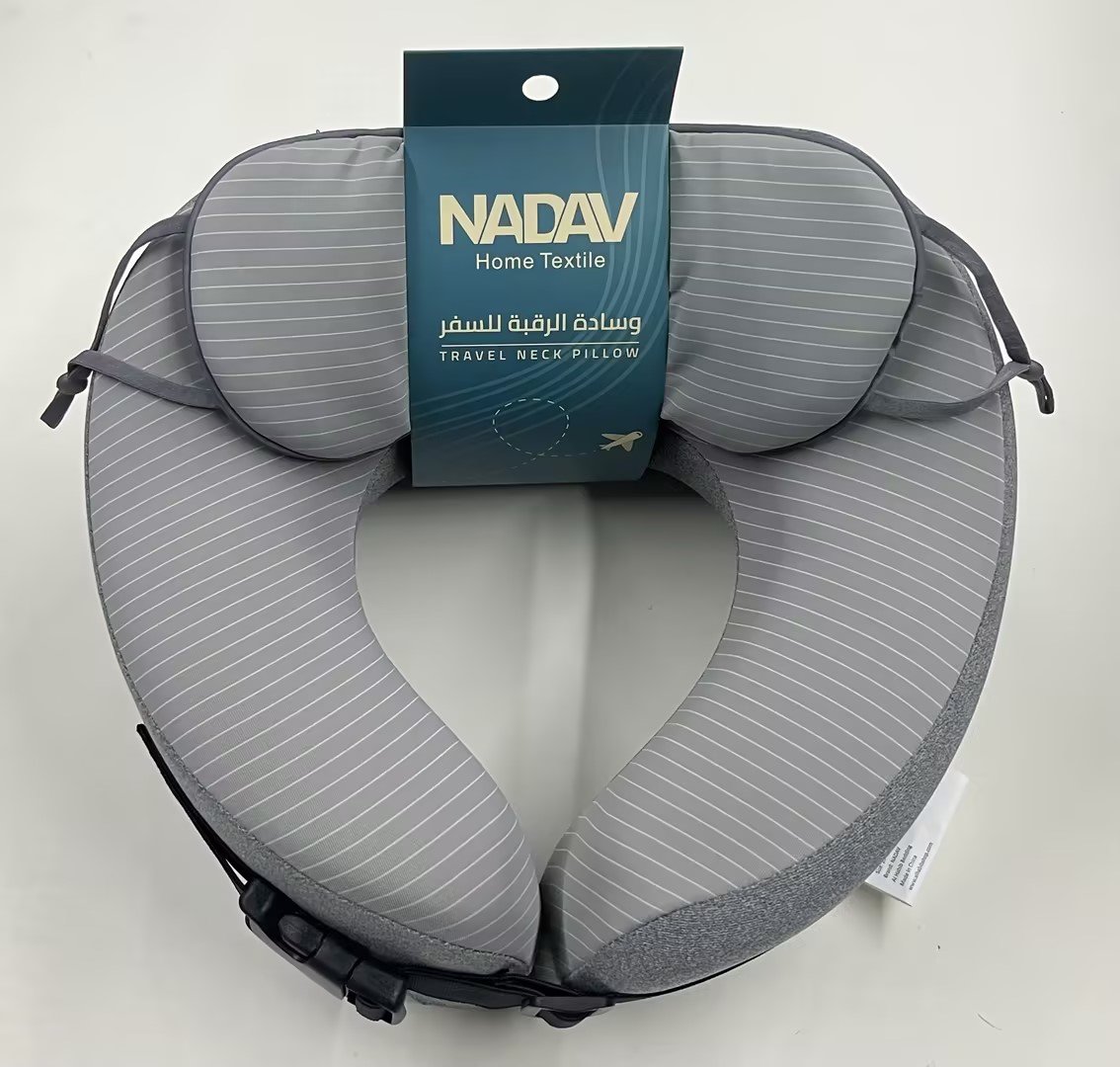 إستمتع بخدادية الرقبة مع قناع العين من نداف و هو عبارة عن وسادة مصممة خصيصًا لتوفير الراحة والدعم أثناء السفر أو الاسترخاء. تأتي الخدادية على شكل حرف "C" لتناسب شكل الرقبة بشكل مثالي، مما يساعد على تخفيف الضغط على العضلات ويوفر دعمًا للرقبة أثناء الجلوس أو النوم.