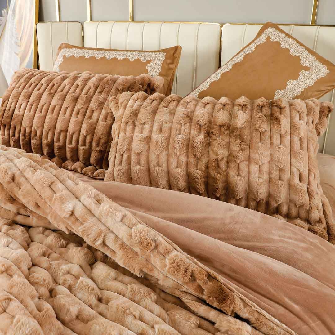 اضف الدفء والراحة لغرفة نومك مع مفرش أوشن صُنع من المخمل والفرو المحفور الفاخر الناعم لتنعم بنوم هادئ .