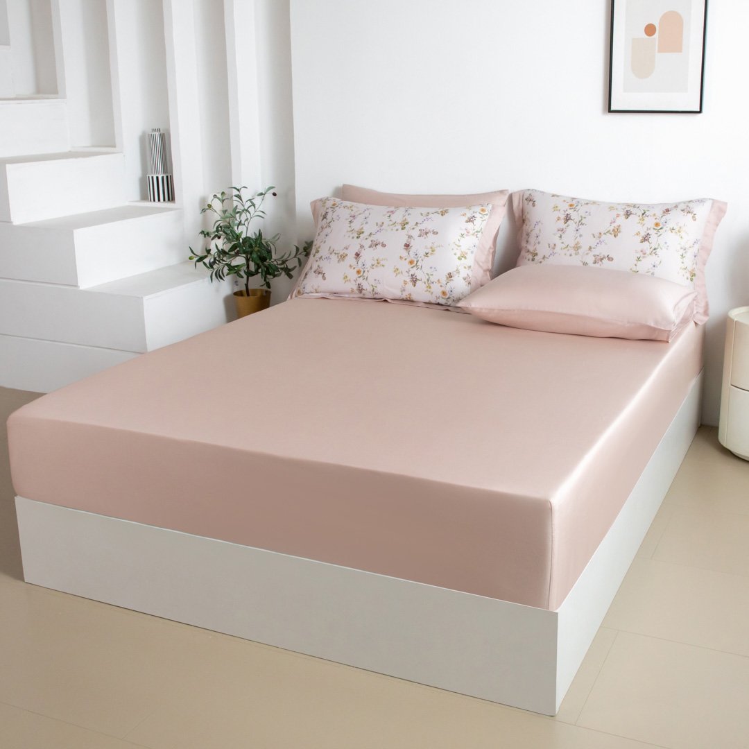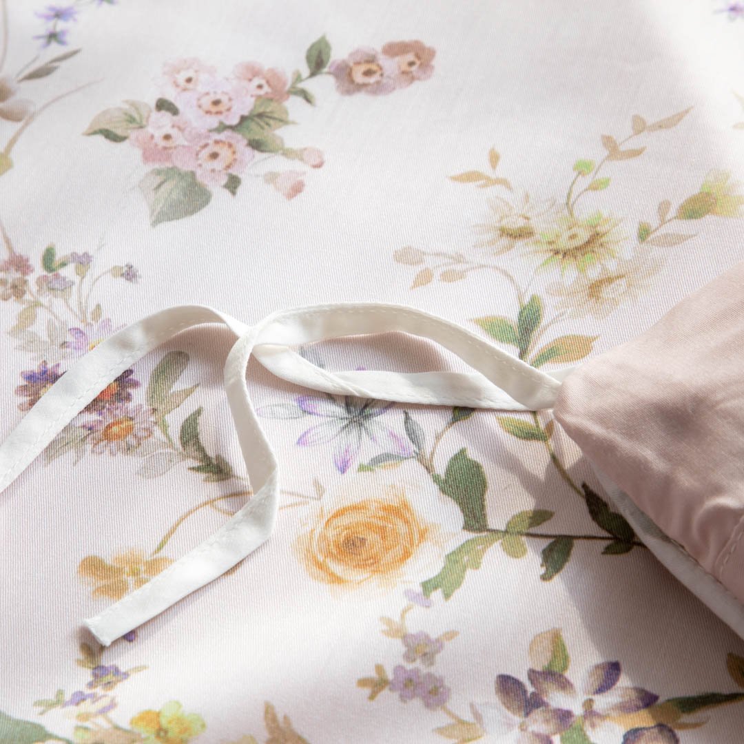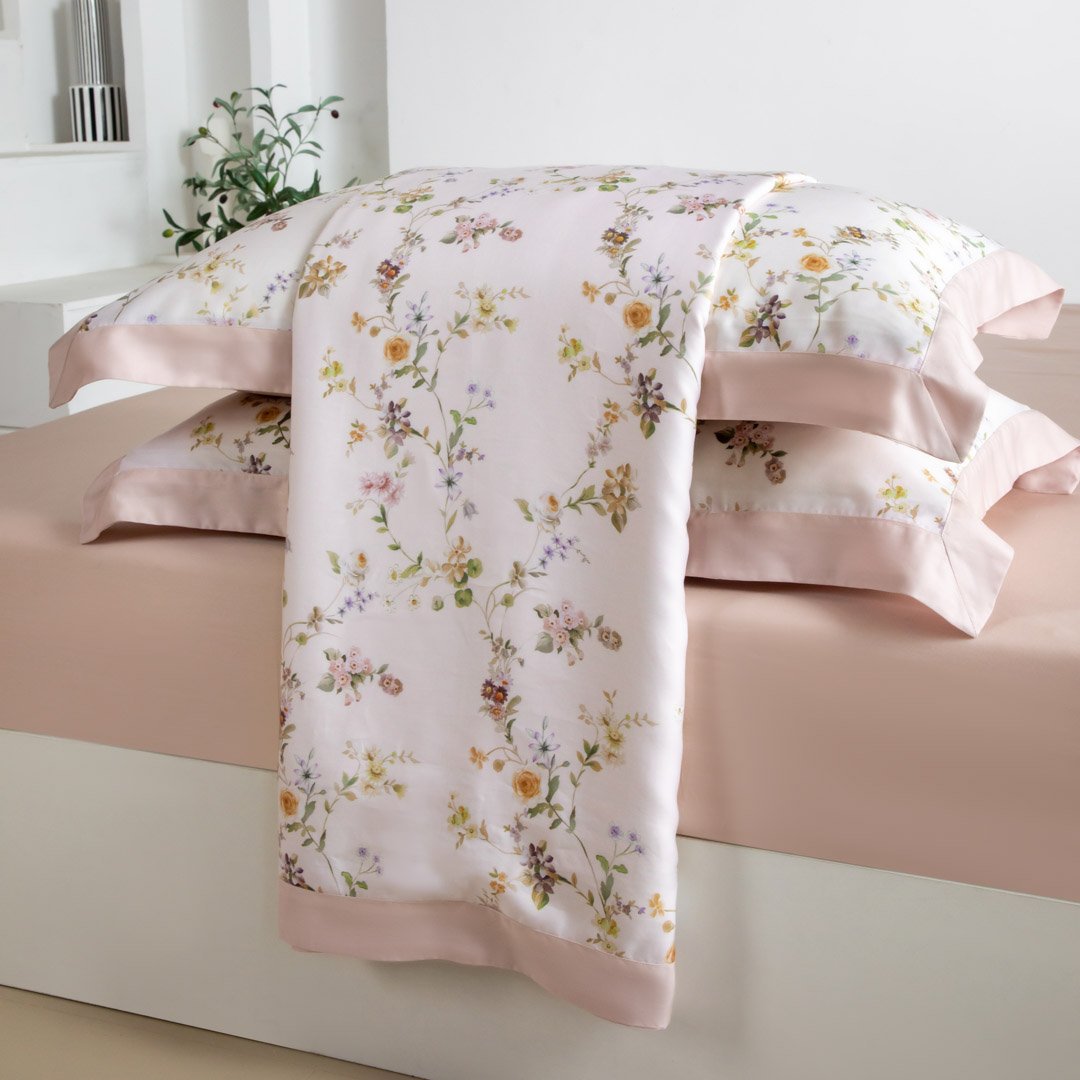 مفرش دينا صيفي كوين مقاس 200x160 سم من التنسل الفاخر بلون أبيض وردي برسومات الزهور عدد القطع 5
