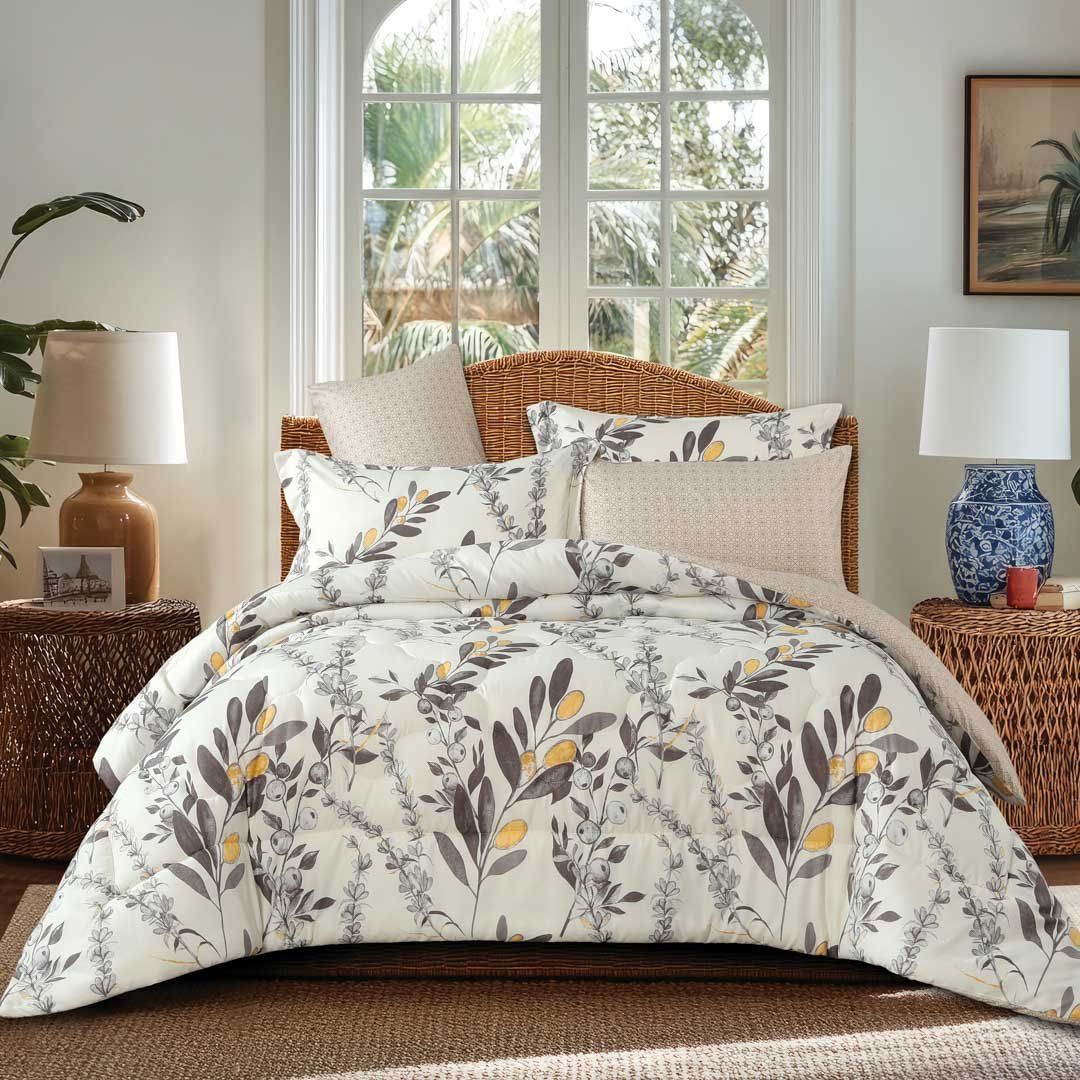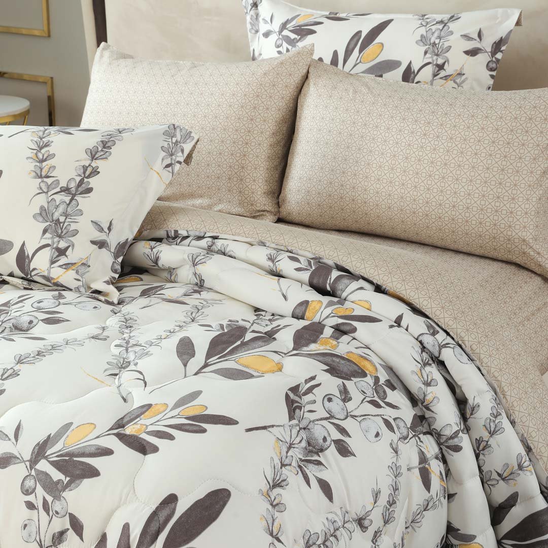 مفرش نوفا صيفي كوين مقاس 200x150 سم أبيض بيج برسومات الزهور عدد القطع 4
