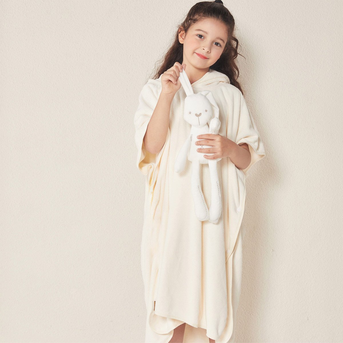 منشفة كابا أطفال قابلة للارتداء مع غطاء للرأس مصنوعة من خامة المخمل خفيفة، ناعمة جداً تتميز بجودتها العالية وامتصاصها الفائق للماء.