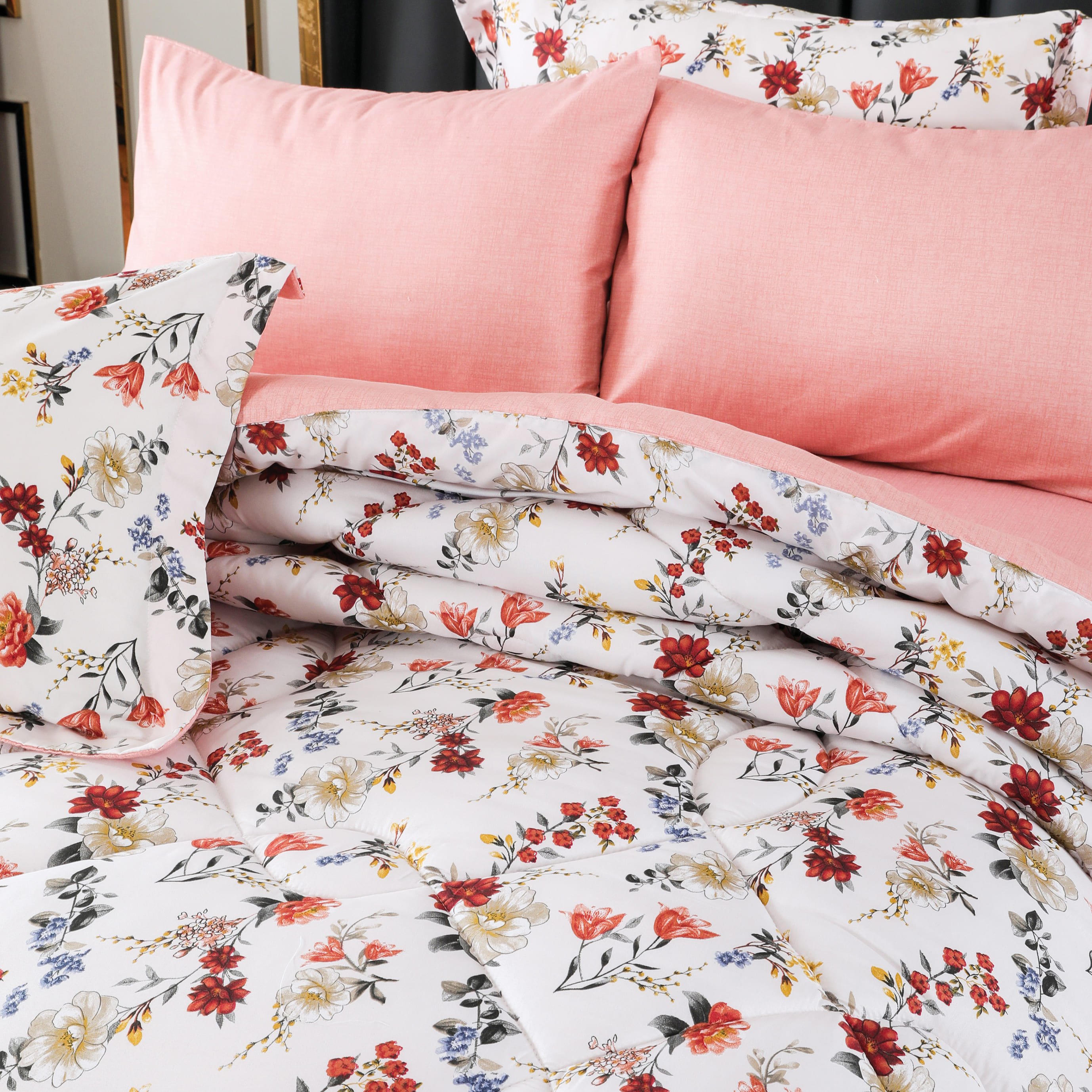 إرشادات العناية ب ديزاير مفرش صيفي مفرد ونص أبيض وردي برسومات الزهور 4 قطع: