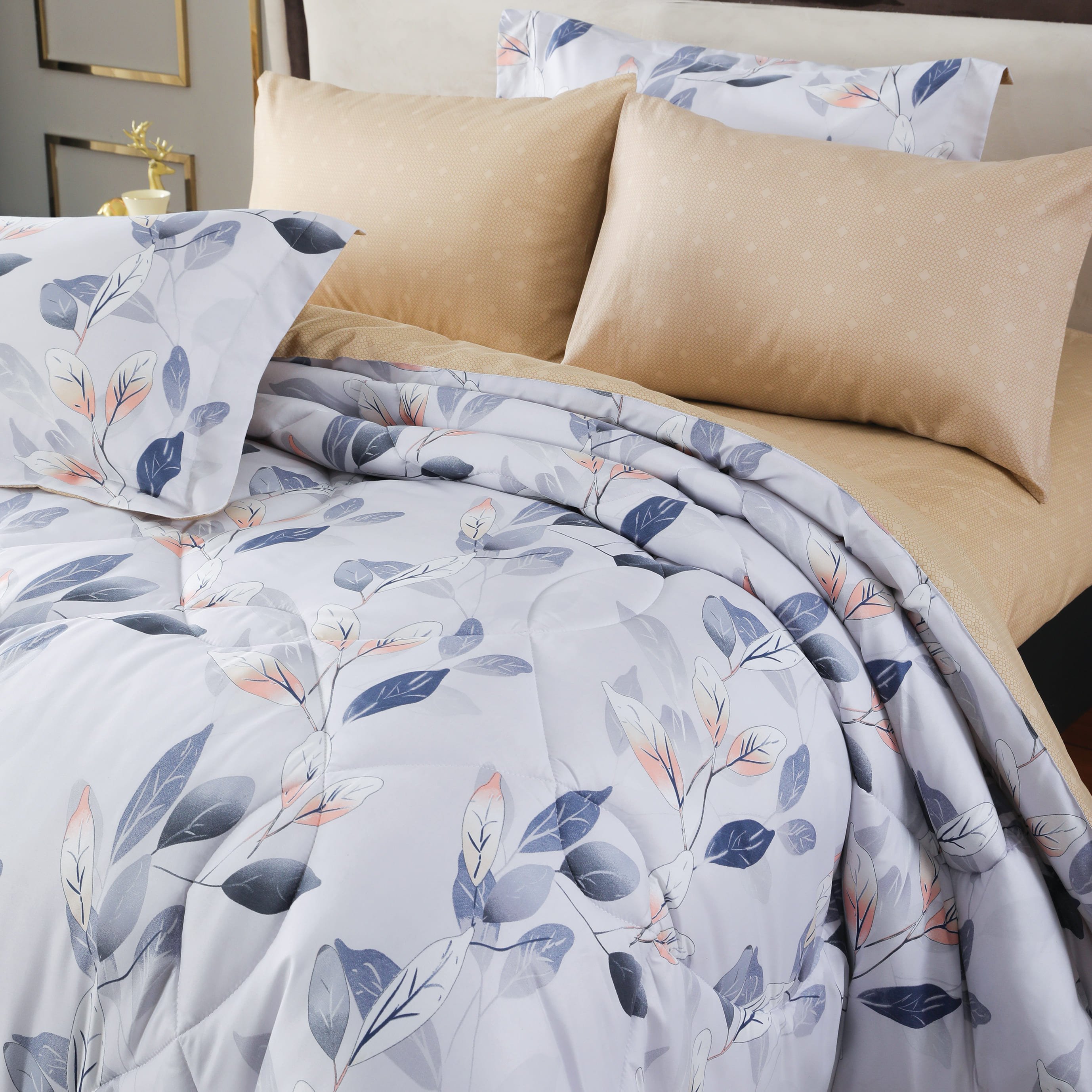 مفرش نوفا صيفي مفرد و نص بيج سماوي برسومات الزهور عدد القطع 4
