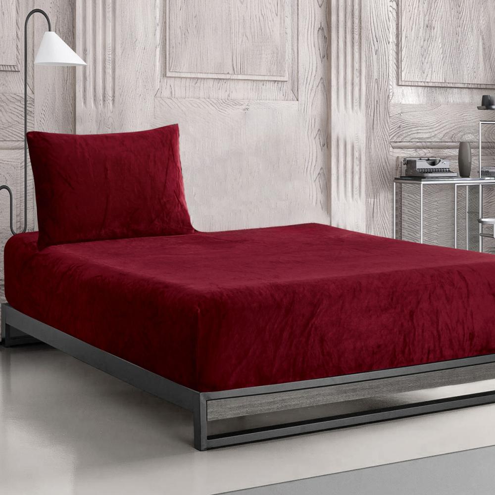 طقم شرشف دفى مطاط شتوي مفرد و نص مخمل عنابي عدد القطع 2