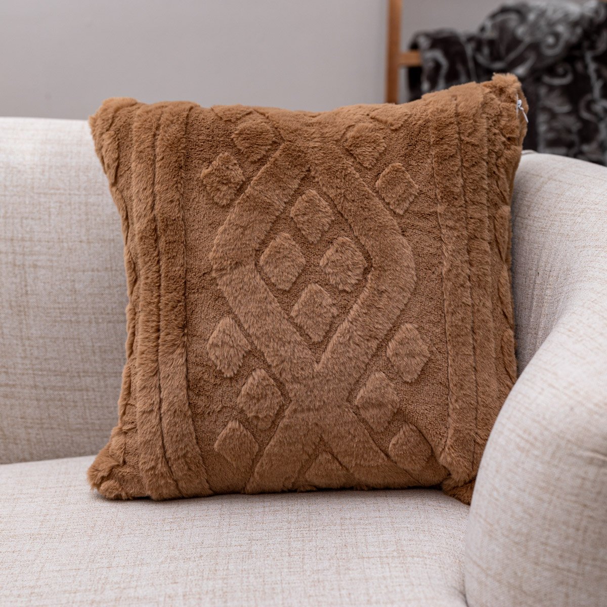 خدادية مربعة بحشوة فرو بني 45 × 45 سم