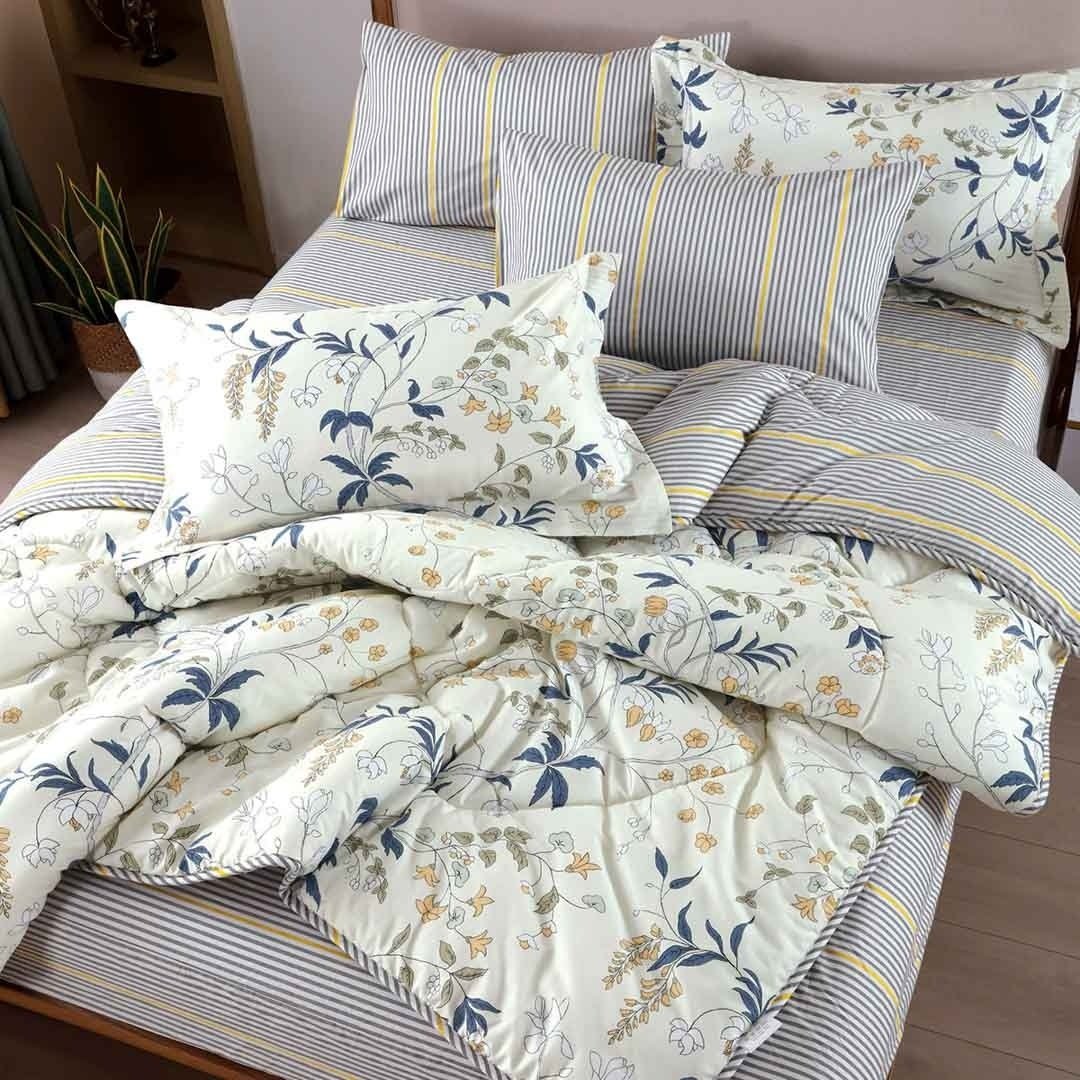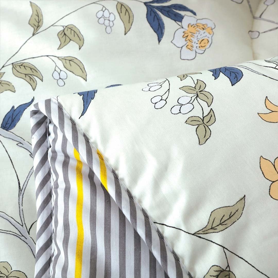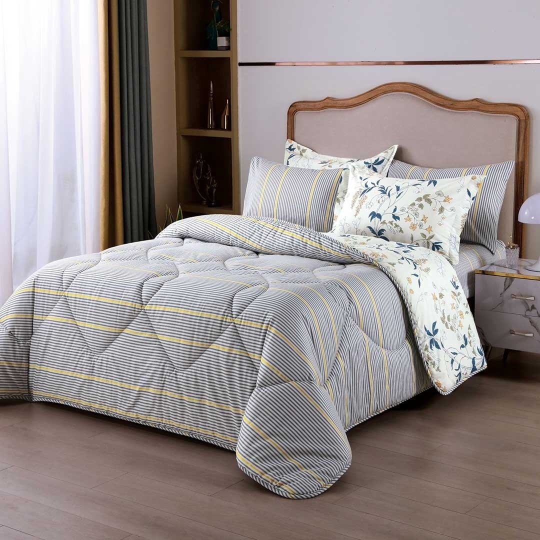 مفرش سمرلاند صيفي مزدوج برسومات الزهور كريمي و رصاصي عدد القطع 6