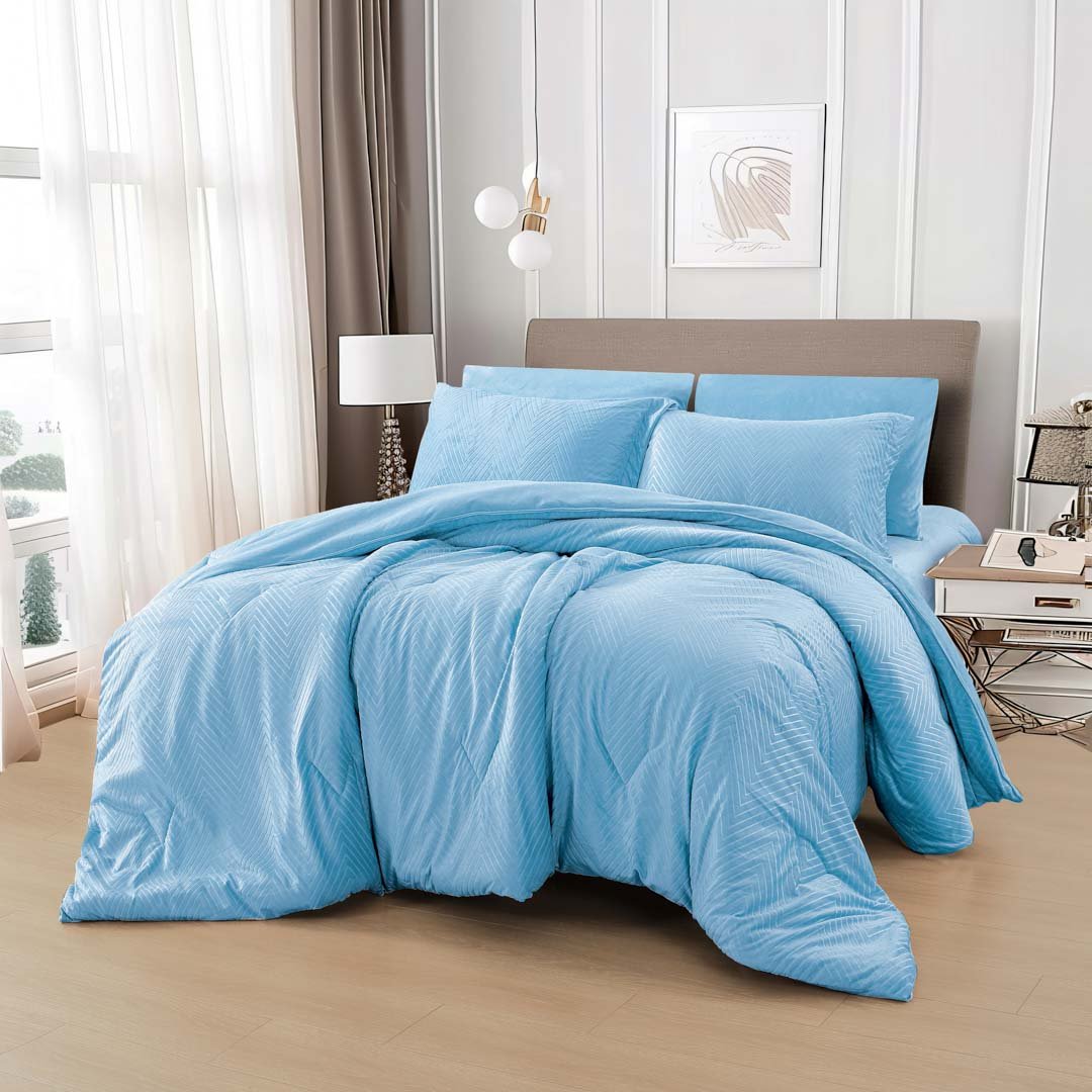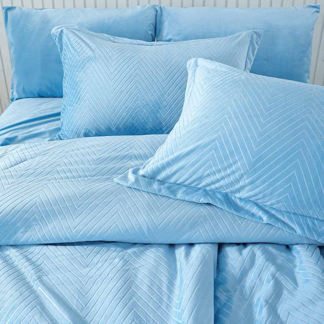 مفرش تولا شتوي فاخر كوين مقاس 200X150 سم مخمل سماوي عدد القطع 4