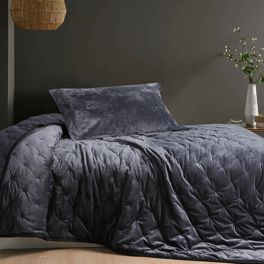 Diamond Winter Comforter Set – Queen Size 230×200 cm – Luxury Velvet – Dark Gray – 3 Pieces