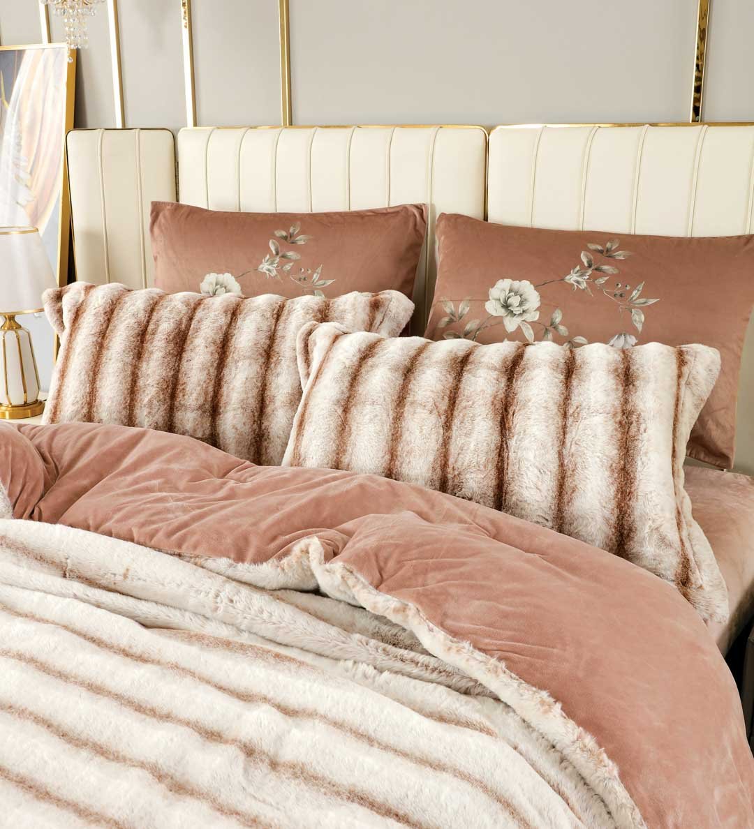 Add warmth and comfort to your bedroom with the Cloud Winter Comforter Set, made from luxurious soft velvet and carved faux fur for a peaceful and cozy sleep every night.