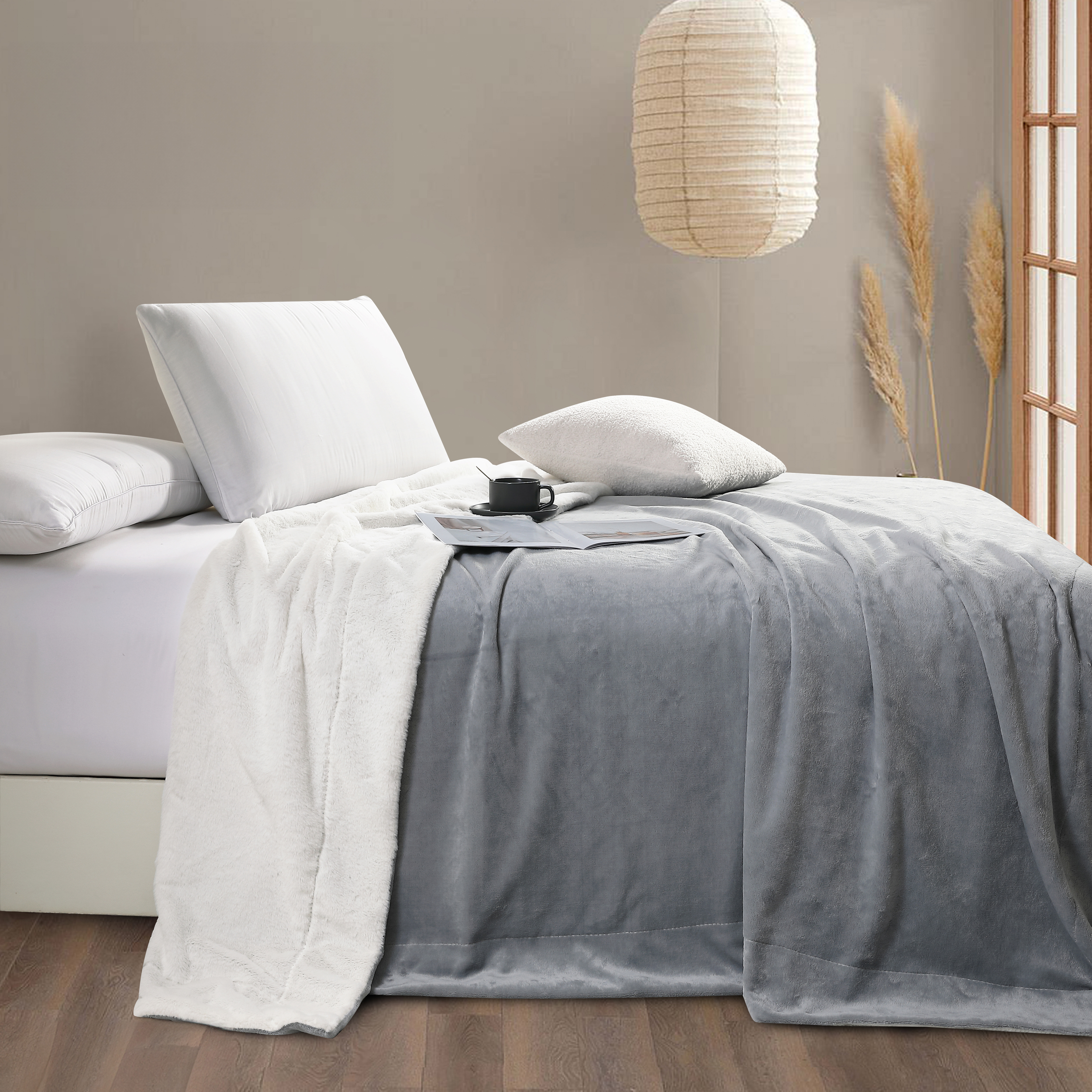 Valerio Light Grey Velvet & Fur Winter Blanket – 230x200 cm