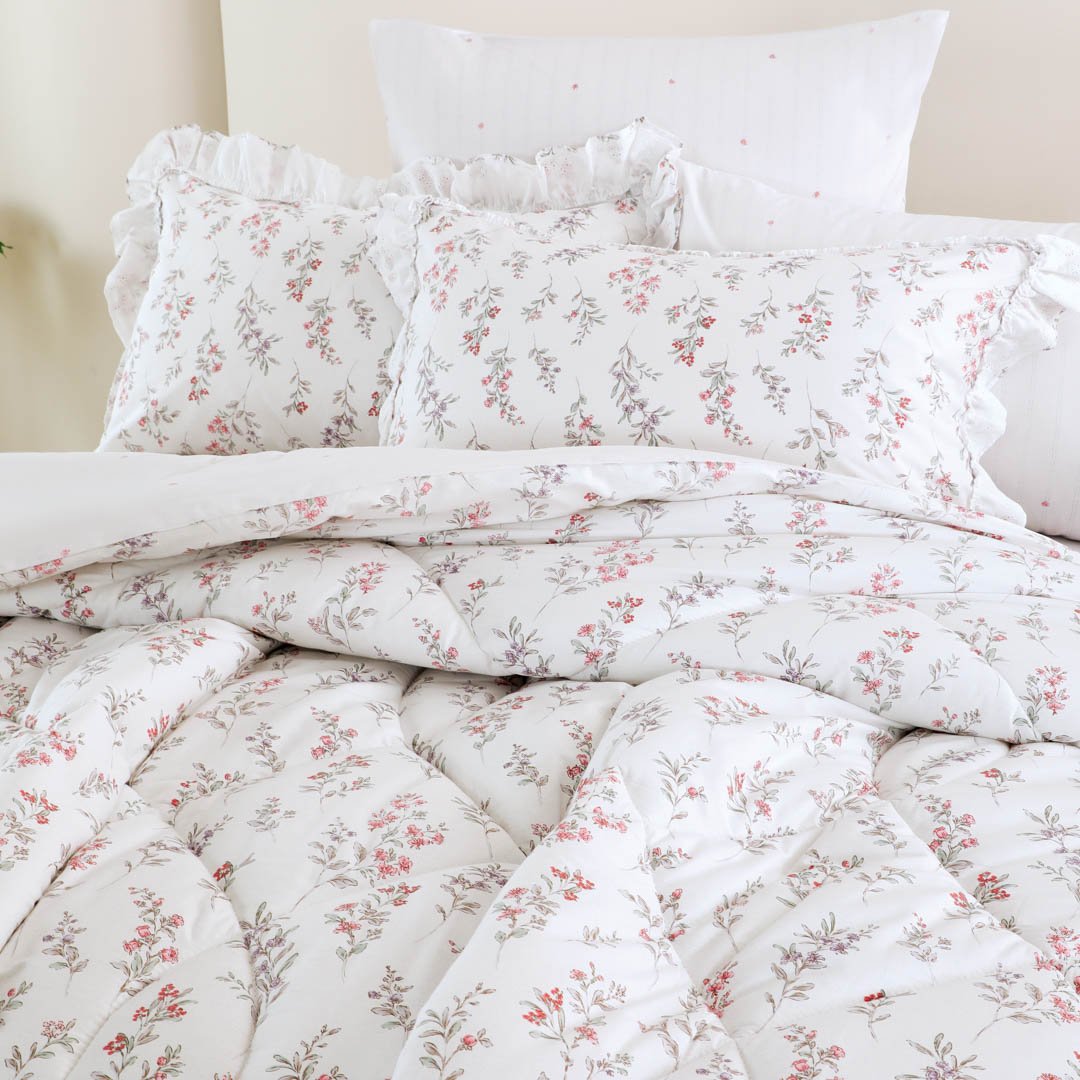 مفرش ريد روز صيفي مزدوج قطن فاخر أبيض برسومات الزهور عدد القطع 6