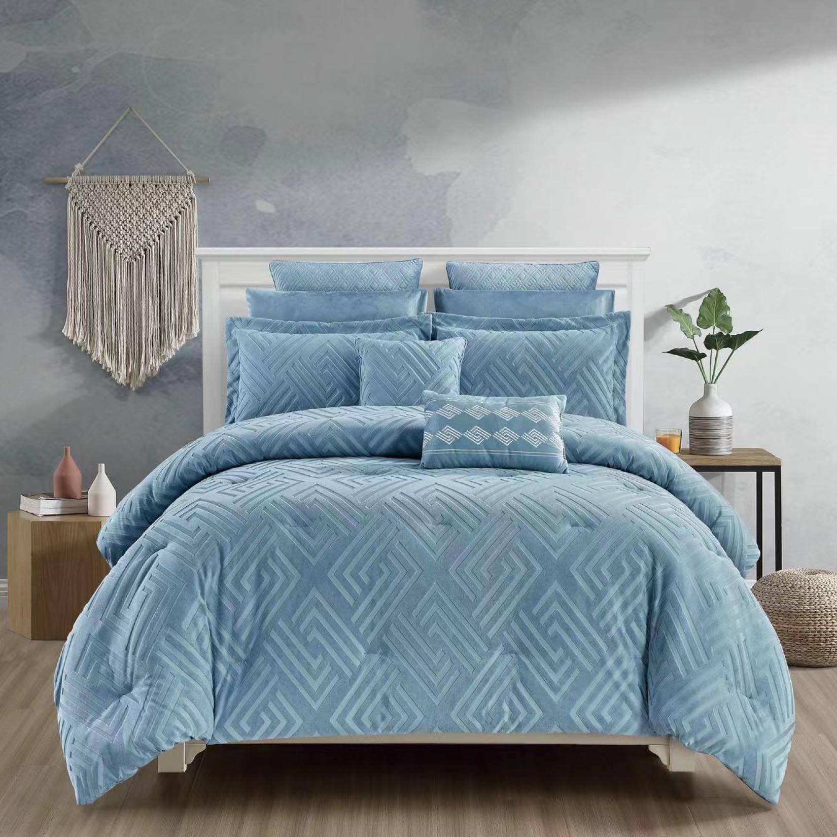 Maisson Luxury Winter Double Velvet Comforter Set Sky Blue 10 Pieces