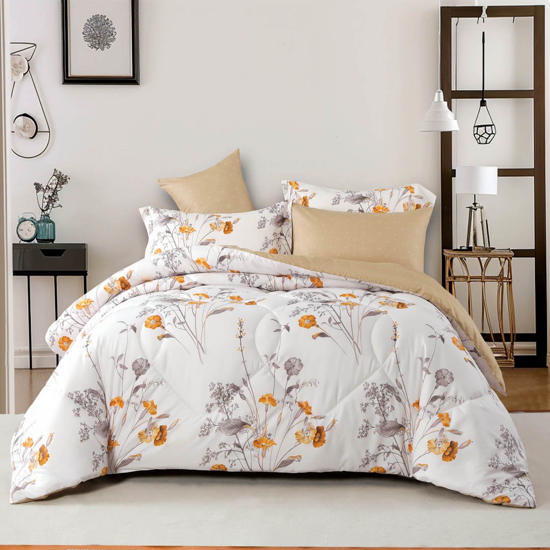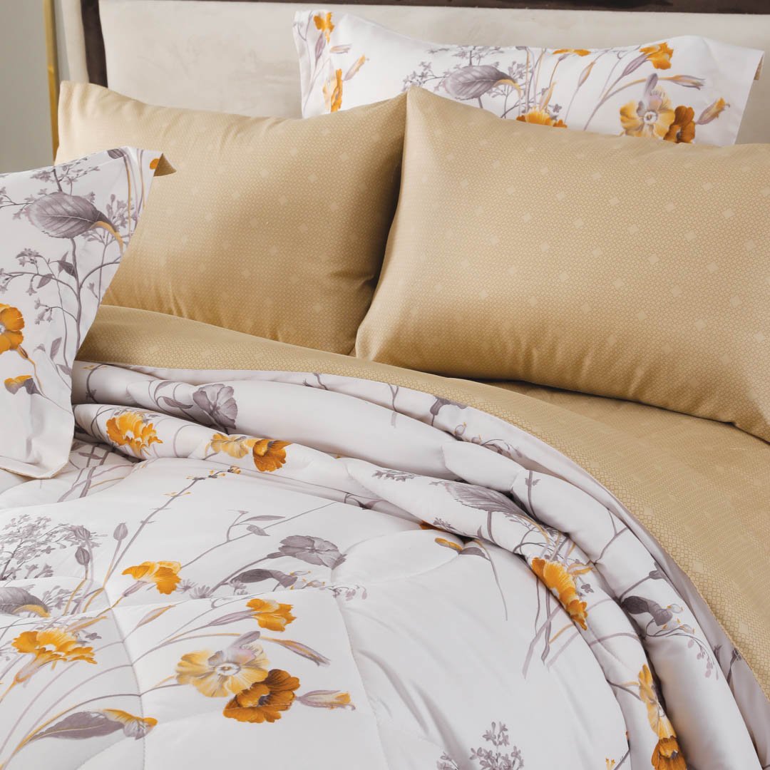 Nova Summer Single and a Half Bedspread, White, Beige, with Floral Designs, 4 Pieces