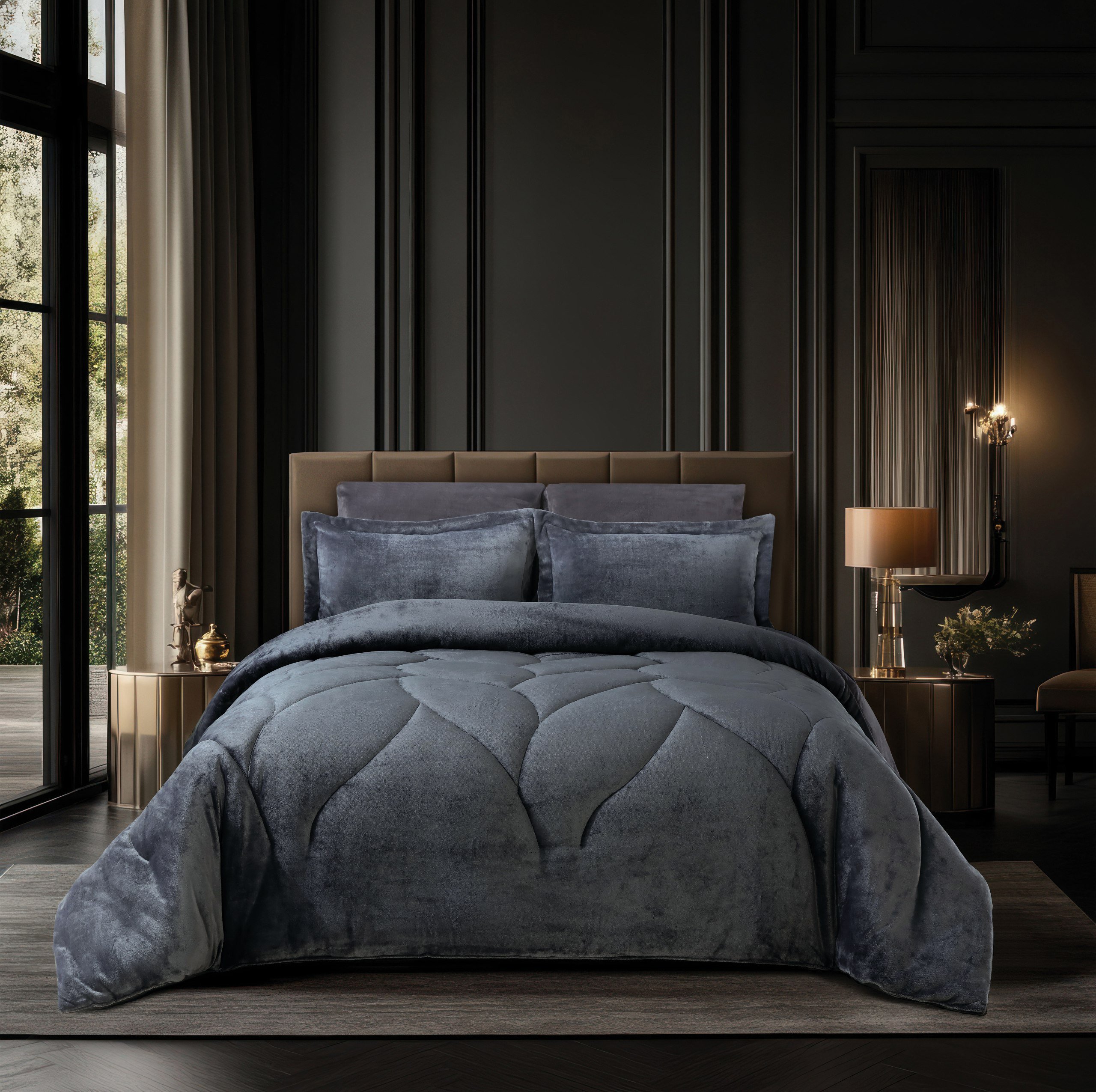 مفرش سها شتوي مفرد ونص رصاصي غامق عدد القطع 4