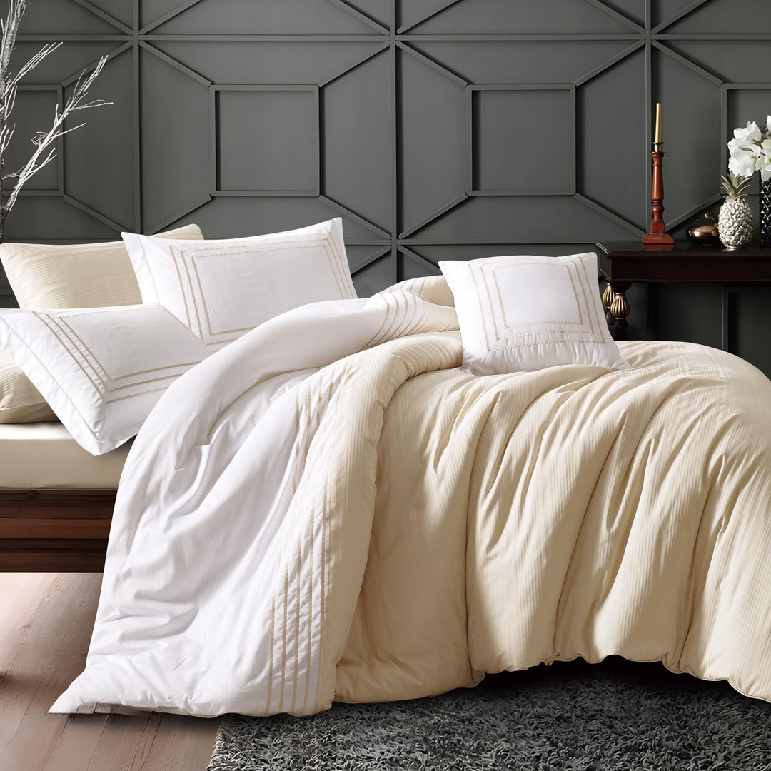 مفرش سكارلت صيفي مزدوج فاخر قطن مطرز بيج فاتح عدد القطع 7