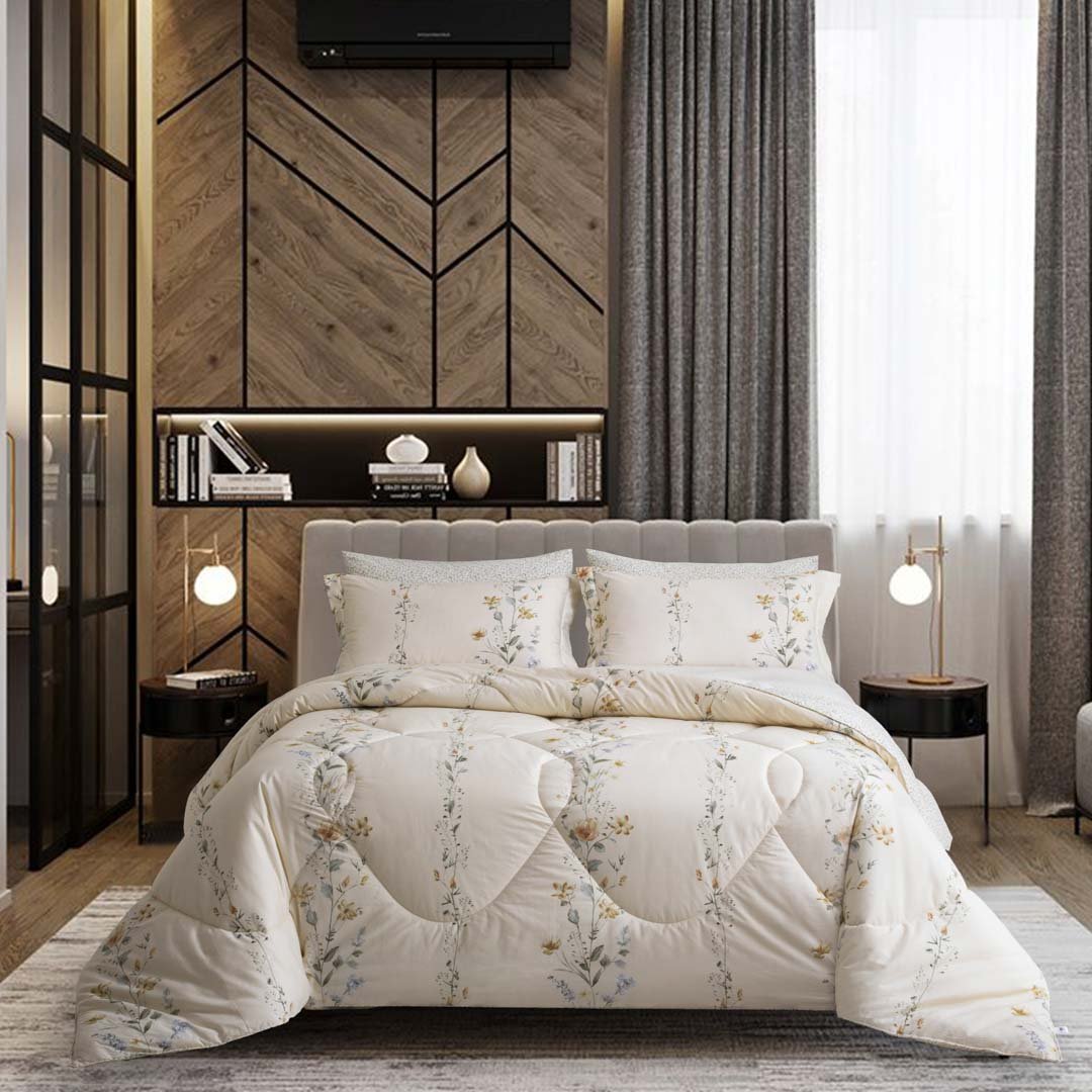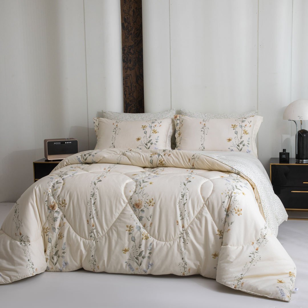 مفرش سمر لاند مزدوج برسومات الزهور كريمي عدد القطع 6
